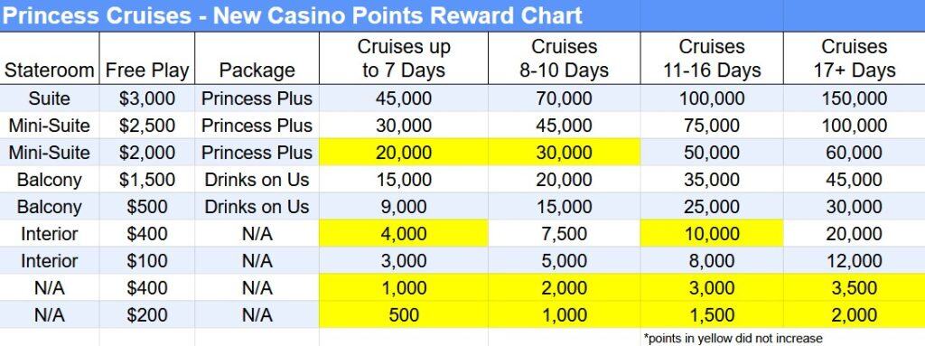 Some players club rewards remain unchanged while others saw casino point increases ranging from 17% to 75%, fundamentally altering the strategy for Princess Cruises casino players trying to maximize their onboard gambling rewards.